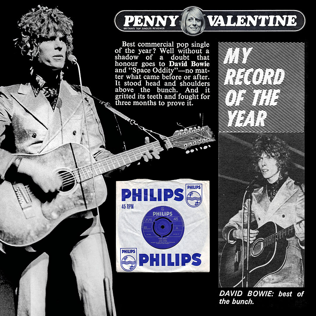 “Best commercial pop single of the year? Well without a shadow of a doubt that honour goes to David Bowie and “Space Oddity” — no matter what came before or after. It stood head and shoulders above the bunch. And it gritted its teeth and fought for three months to prove it.”