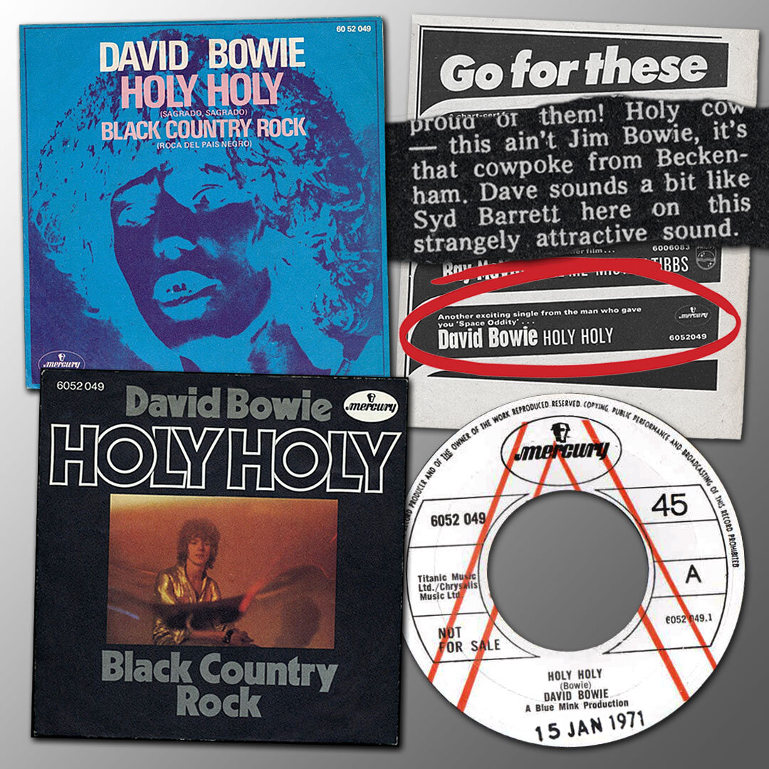 David Bowie’s Holy Holy was released on this day fifty years ago (15th January 1971), as the last of the Bowie releases on Mercury. It was clear the label wasn’t really giving the record the promotion it had given the preceding Bowie singles in terms of picture sleeves and press adverts. Picture sleeves were issued in Spain (top left) and Germany only.