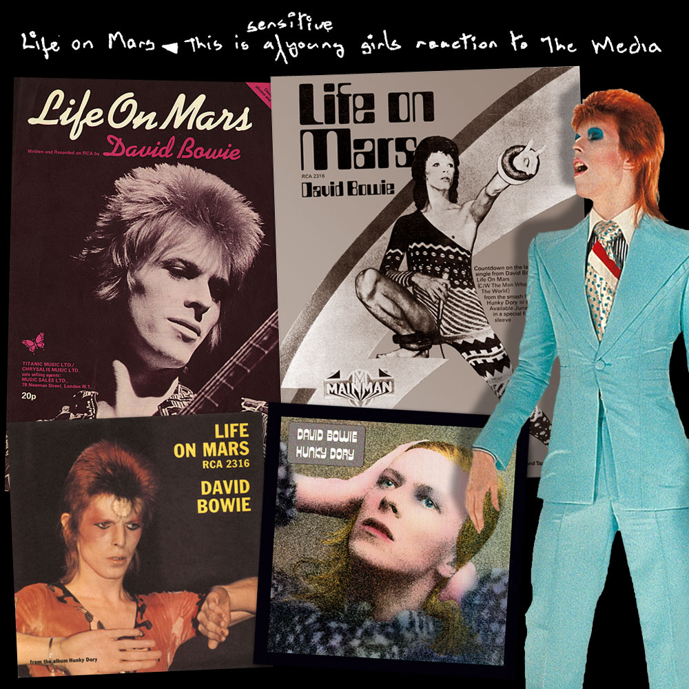 Taking into account the insertion and crossing out that David made to his original annotation, the entry for Life On Mars? read: “Life on Mars - This is a sensitive young girl’s reaction to...The Media.”.
