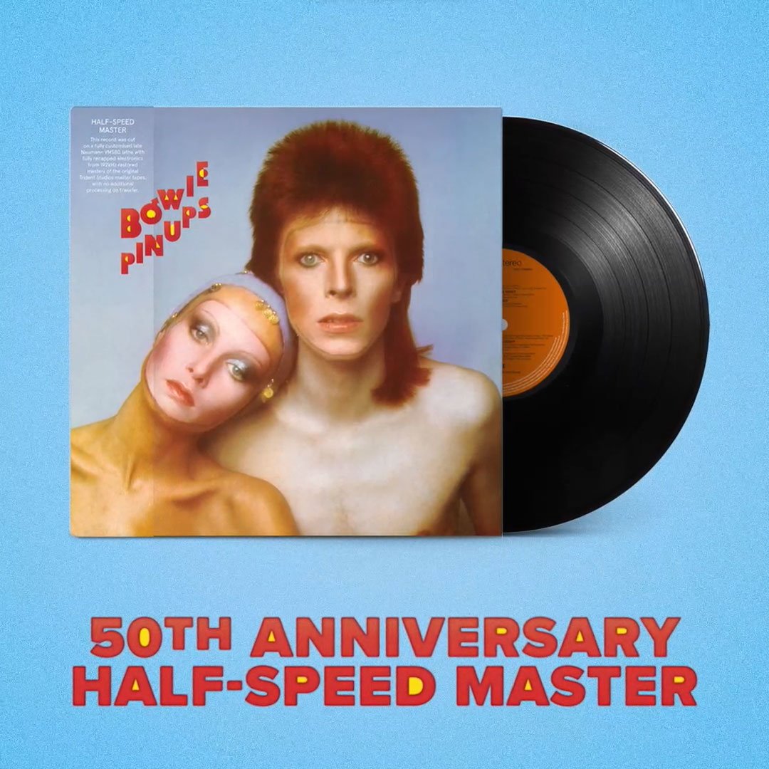 On 20th October 2023, one day after its Golden Jubilee, Pin Ups will be issued as a limited edition 50th anniversary half-speed mastered LP. This new pressing was cut on a customised late Neumann VMS80 lathe with fully recapped electronics from 192kHz restored masters of the original master tapes, with no additional processing on transfer. John Webber cut the half-speed at AIR Studios.