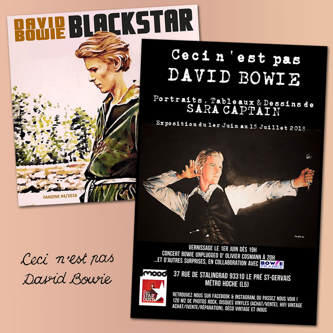 A quick reminder that the Ceci N'est Pas David Bowie exhibition of Bowie portraits by Sara Captain opens at La Galerie Stardust/Mood in Paris at 19:00 hours this evening.