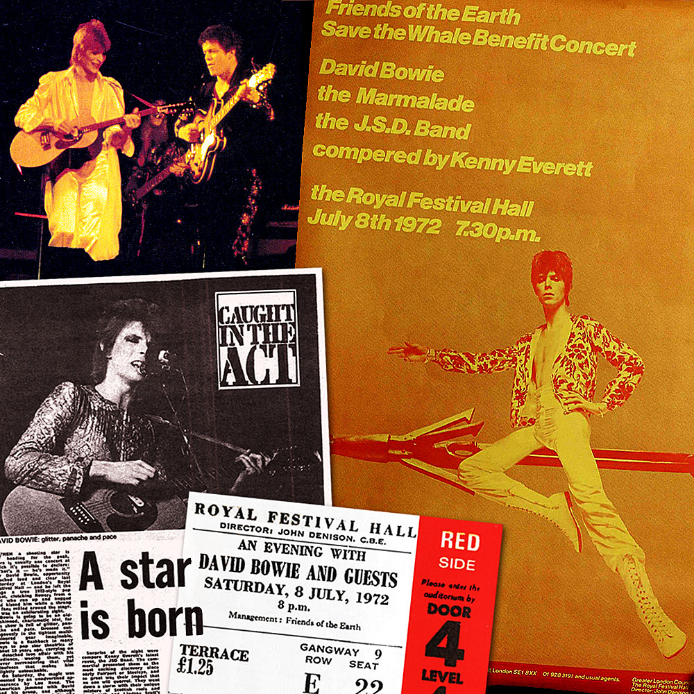 As David Bowie pointed out during Meltdown 2002 at The Royal Festival Hall (RFH) when he brought The Dandy Warhols onstage to join him for White Light/White Heat, July 8th 1972 is the day that he performed as the headline act for a Friends of the Earth/Save the Whale Benefit Concert at the RFH.