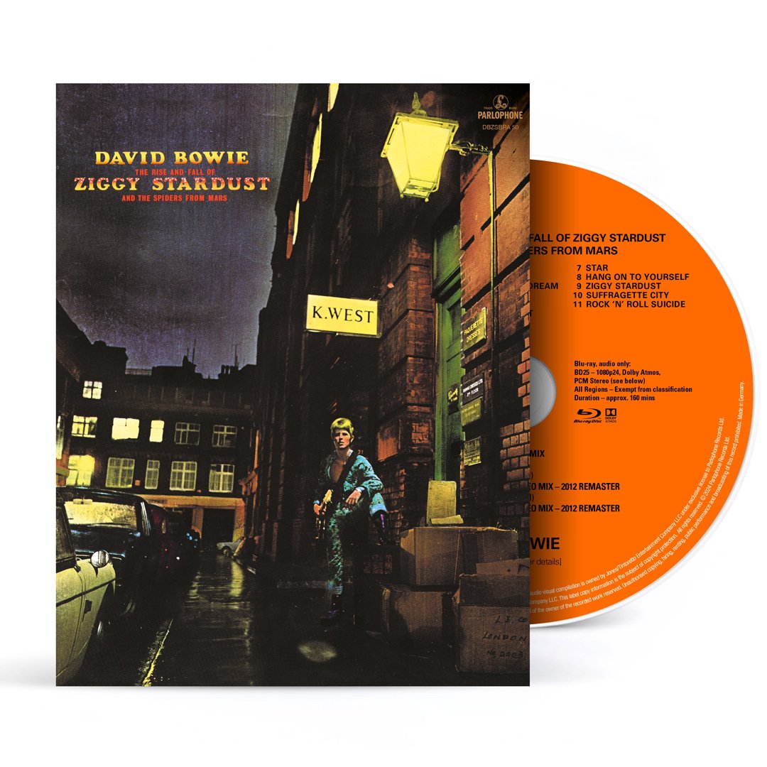 The Blu-Ray audio disc of THE RISE AND FALL OF ZIGGY STARDUST AND THE SPIDERS FROM MARS features four iterations of this timeless album: 2024 Dolby Atmos mix, 2024 Stereo Mix (96 khz / 24-bit pcm), original 1972 Stereo Mix – 2012 remaster (192 khz / 24-bit pcm), original 1972 Stereo Mix – 2012 remaster (48 khz / 24-bit pcm). The Atmos version of the album was mixed by Emre Ramazanoglu and Ken Scott at RAK Studios, London.