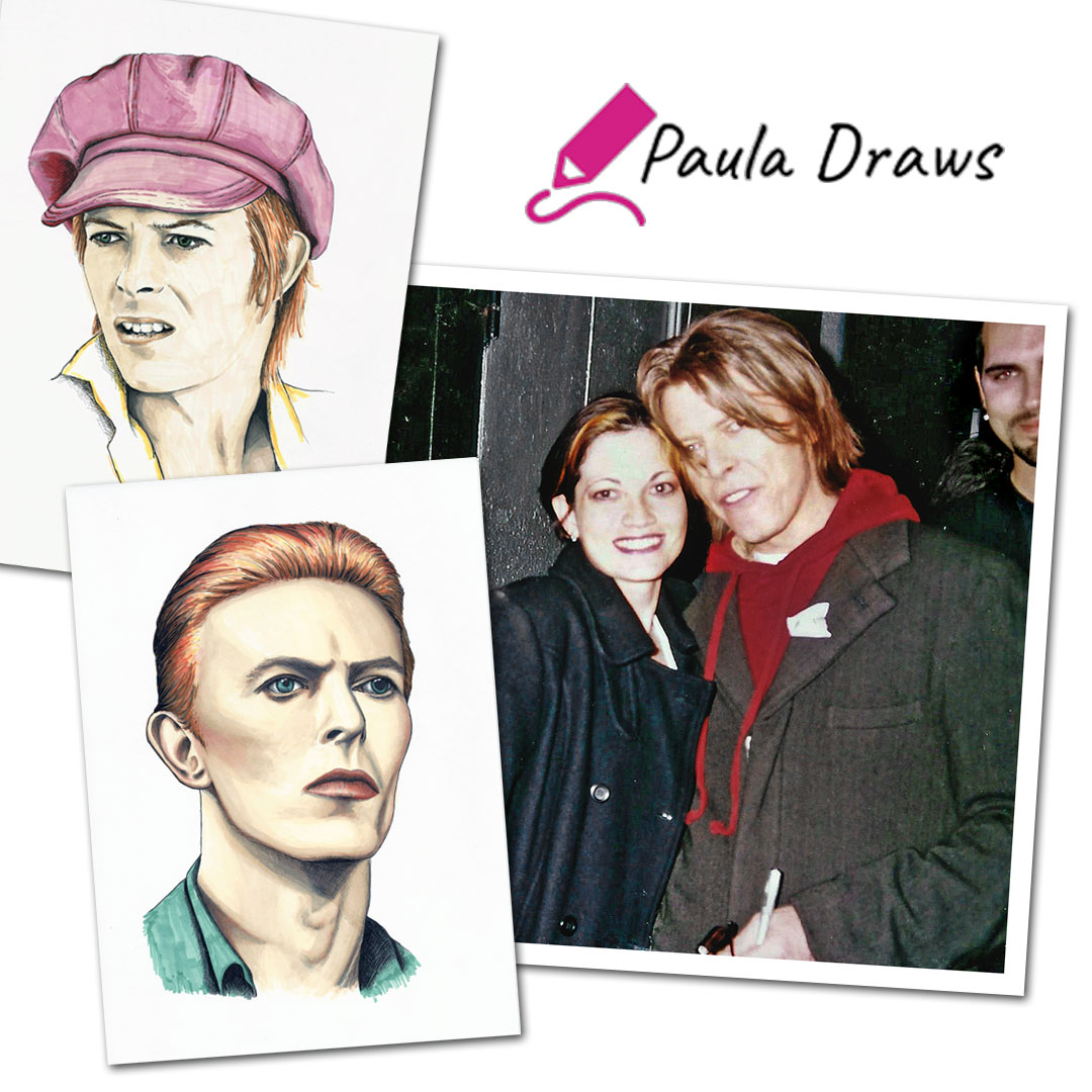 PH: Drawing! I started drawing at a very early age and would spend much of my spare time with a pad of paper and pens, pencils, pastels, or anything I could draw with. People were my favourite subjects to draw, followed closely by pets and other animals. As an adult, life got in the way and I abandoned my hobby for a while, however in the last couple of years I have started getting back into it and am really loving it. I now do commissioned artwork as well as art for a hobby, and my most recent work can be seen at PaulaDraws.com (you will notice that one of my favorite subjects is David Bowie of course!)