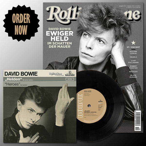 As David Bowie’s legendary album "Heroes" celebrates its 40th anniversary, the new issue of ROLLING STONE Germany contains an exclusive 7inch single: The vinyl features a live version of the immortal hit "Heroes" and the German version of the song.