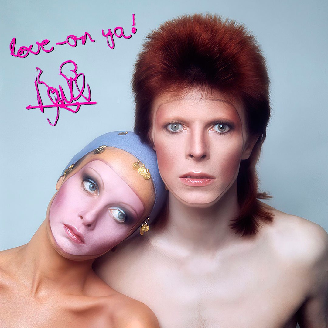 Joining Bowie on the sleeve for Justin de Villeneuve’s extraordinary photograph is Twiggy, name-checked earlier the same year on Aladdin Sane for Drive-In Saturday: “She’d sigh like Twig the Wonder Kid”. The image here is an alternative shot to the one used.