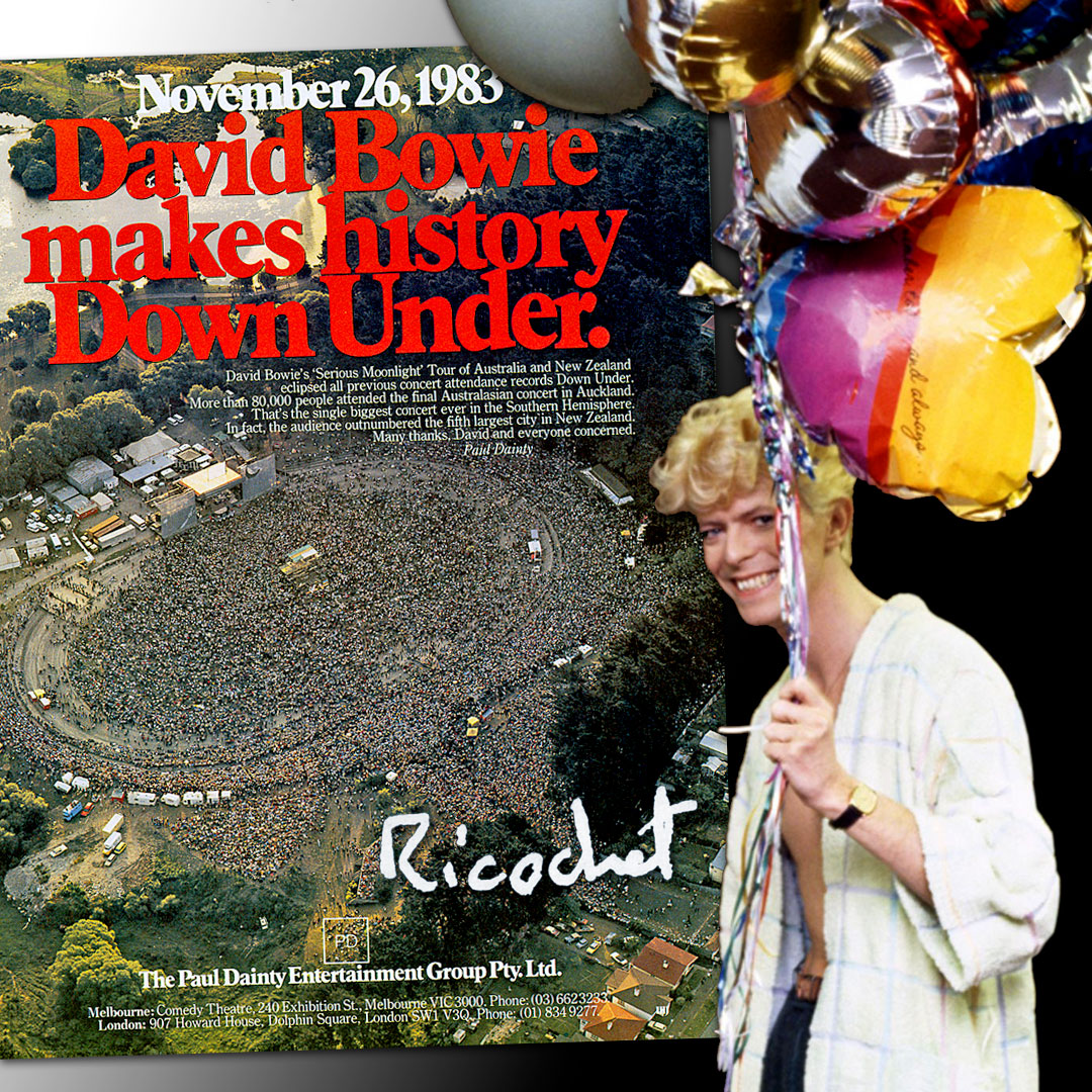 However, 35 years ago today, the 26th of November 1983, was the day that more than 80,000 of them gathered in Auckland for the last stop of the Australasian leg of The Serious Moonlight Tour. At the time, it was claimed that this was: “the single biggest concert ever in the Southern Hemisphere”.